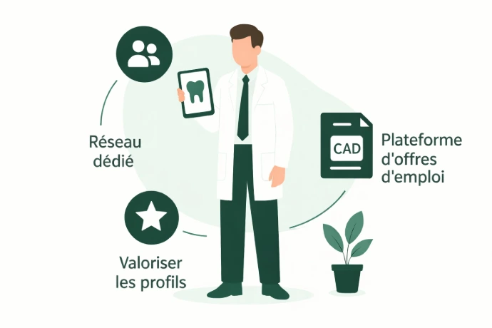 une plateforme d’offres d’emploi exclusivement orientée vers le domaine dentaire ;